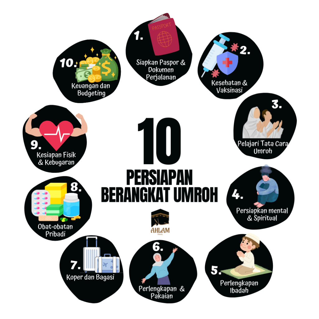 Menjalankan ibadah umroh adalah impian bagi banyak umat muslim. Untuk memastikan perjalanan ibadah berjalan lancar dan nyaman, penting bagi jamaah untuk mempersiapkan segala sesuatunya dengan baik. Berikut ini adalah 10 hal yang perlu dipersiapkan sebelum berangkat umroh, mulai dari dokumen hingga perlengkapan pribadi.